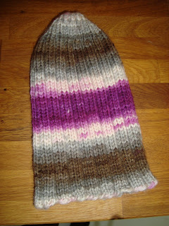 Jag ha rlänge tänkt sticka en enkel mössa till dottern, en vanlig ribbad. Men det var tydligen lite för simpelt, för några beskrivningar på detta hade jag svårt att hitta. Till slut så hittade jag ett mönster på järbo garns hemsida på en mössa, men jag bytte ut garnet mot järbos Raggi. Dessutom stickade jag den mycket längre än det stod i beskrivningen, jag ville ha en lite coolare look. Resultatet blev ganska bra, mössan är mjuk varm, blir jätte skön i vinter. Jag skulle dock inte stickat den längre än det stod i beskrivningen, den blev alldeles för lång för att se riktigt klok ut på dottern. Men jag har ju nått varm och gott att ha i vinter! Så nu är frågan om jag ska sticka en ny i mer lagom format eller om jag ska hitta nått nytt mönster...